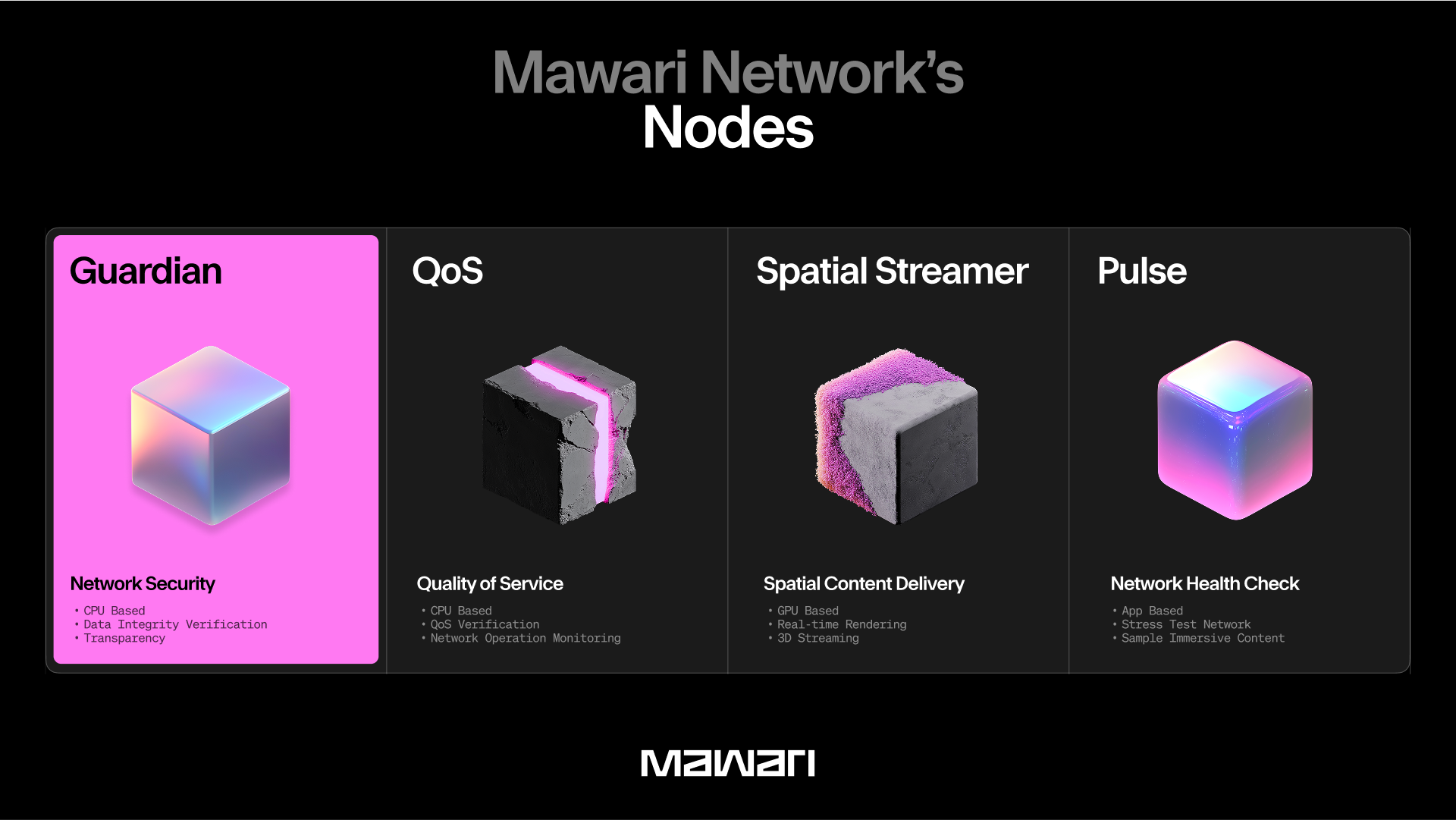 Guardian Nodes はネットワークの検証者および監査役として機能し、Mawariエコシステム全体の透明性と信頼性を維持する重要な役割を担います。