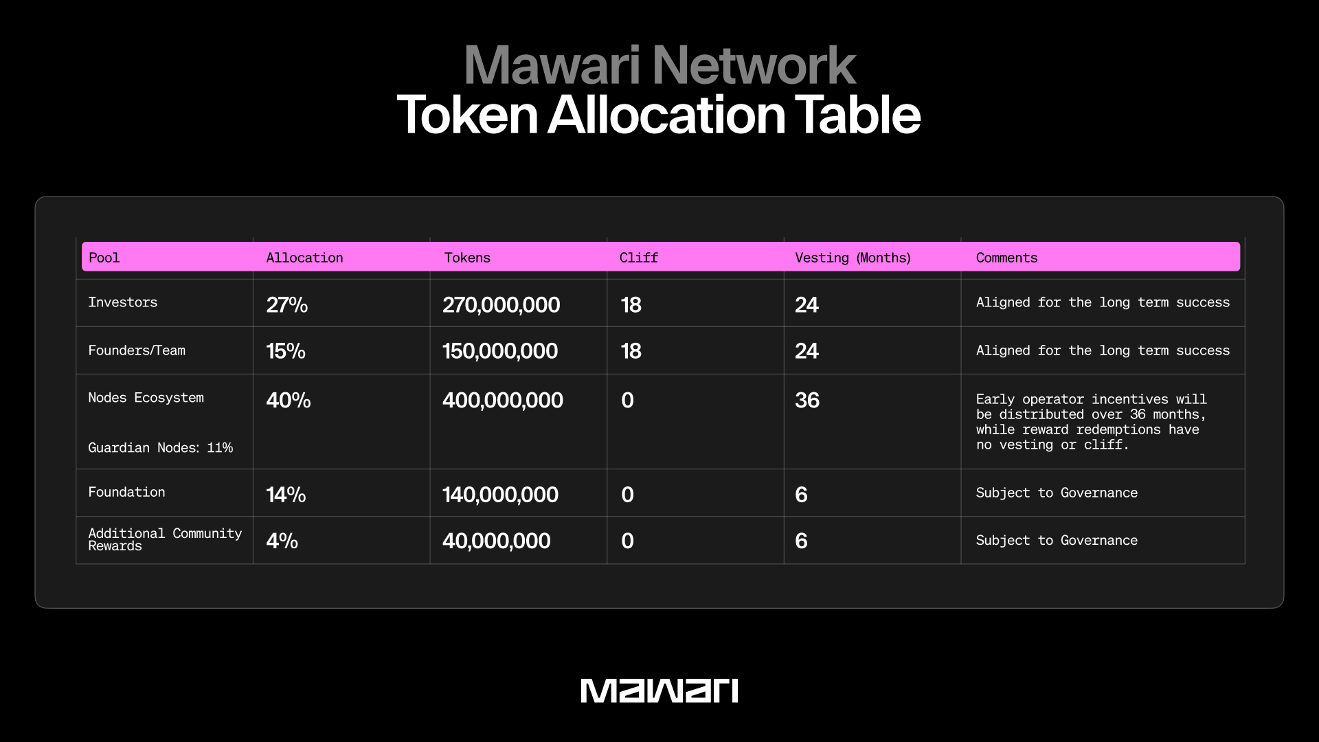 <figure><img src="https://content.gitbook.com/content/xCUKzvp2HS9Vw2COJjqc/blobs/RY6Y36CP9jWFqboM7TDX/Token%20Allocation%20Table%20%20.jpg" alt=""><figcaption></figcaption></figure>